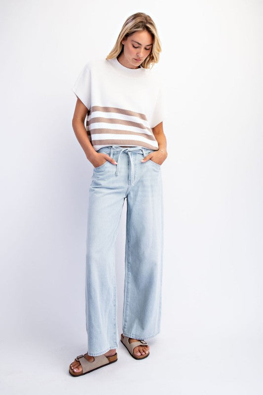 Crafted from pure cotton, these baggy straight jeans deliver effortless comfort with a relaxed silhouette. The mid-rise waistband sits naturally, while the wide-leg cut provides generous room through the hip and thigh. A removable waist tie lets you customize the fit to your preference, making these versatile enough for layering or wearing solo. Perfect for those who prioritize comfort without compromising on style.