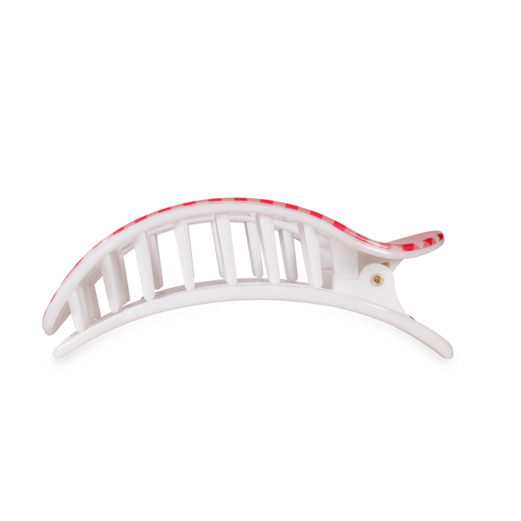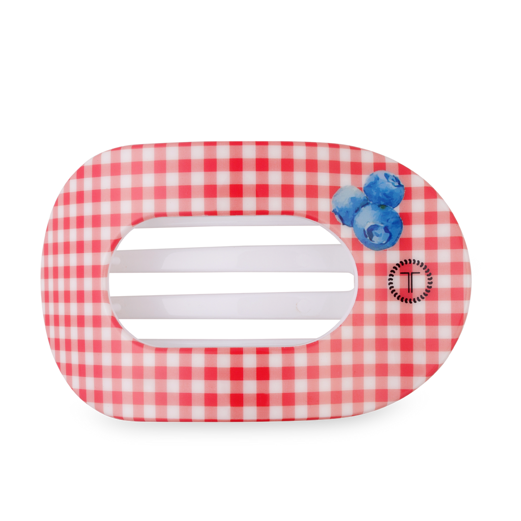 Lay flat and relax in style with TELETIES Blueberry Farms Large Flat Round Hair Clip. Designed with a red gingham and blueberry detail, this nearly unbreakable hair clip provides a secure, comfortable hold for medium to thick hair while sitting flat against your head for all-day wear.