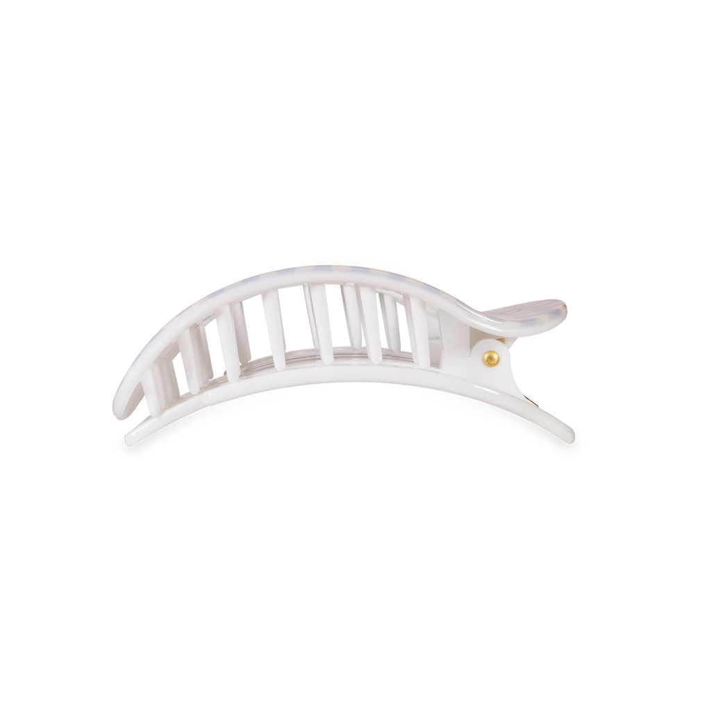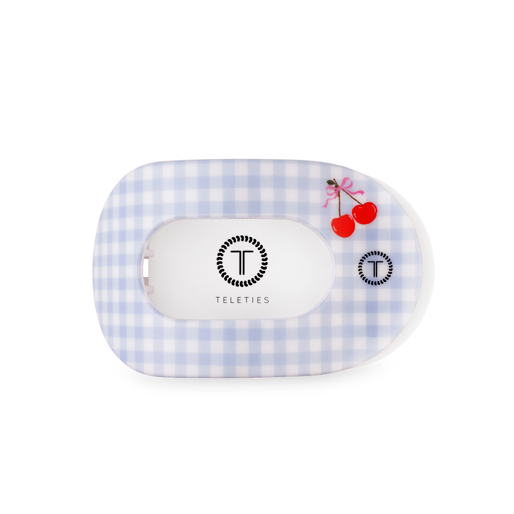 Lay flat and relax in style with TELETIES Basket of Cherries Medium Flat Round Hair Clip. Designed with a light blue gingham and cherry detail, this nearly unbreakable hair clip provides a secure, comfortable hold for medium to thick hair while sitting flat against your head for all-day wear.