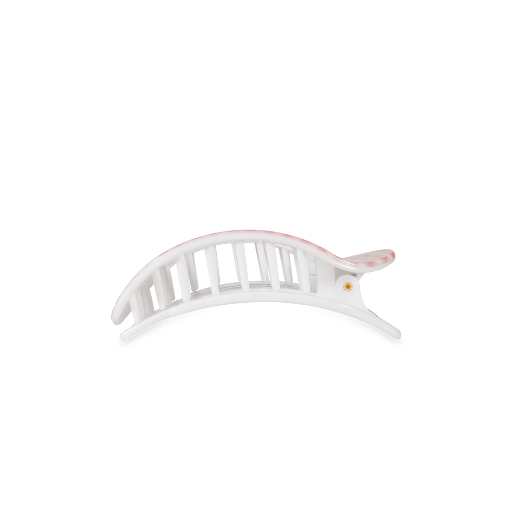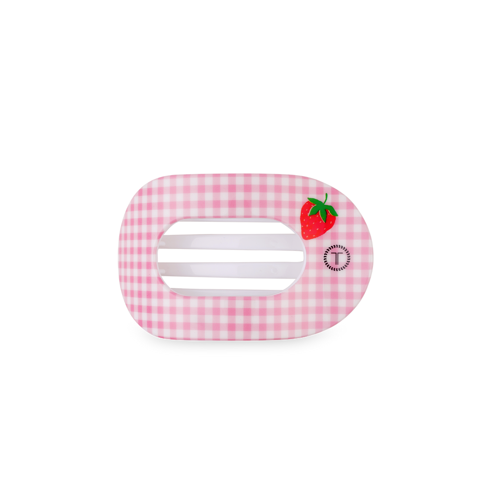 Lay flat and relax in style with TELETIES Handpicked Small Flat Round Hair Clip. Designed with a light pink gingham and strawberry detail, this nearly unbreakable hair clip provides a secure, comfortable hold for thin to medium hair while sitting flat against your head for all-day wear.
