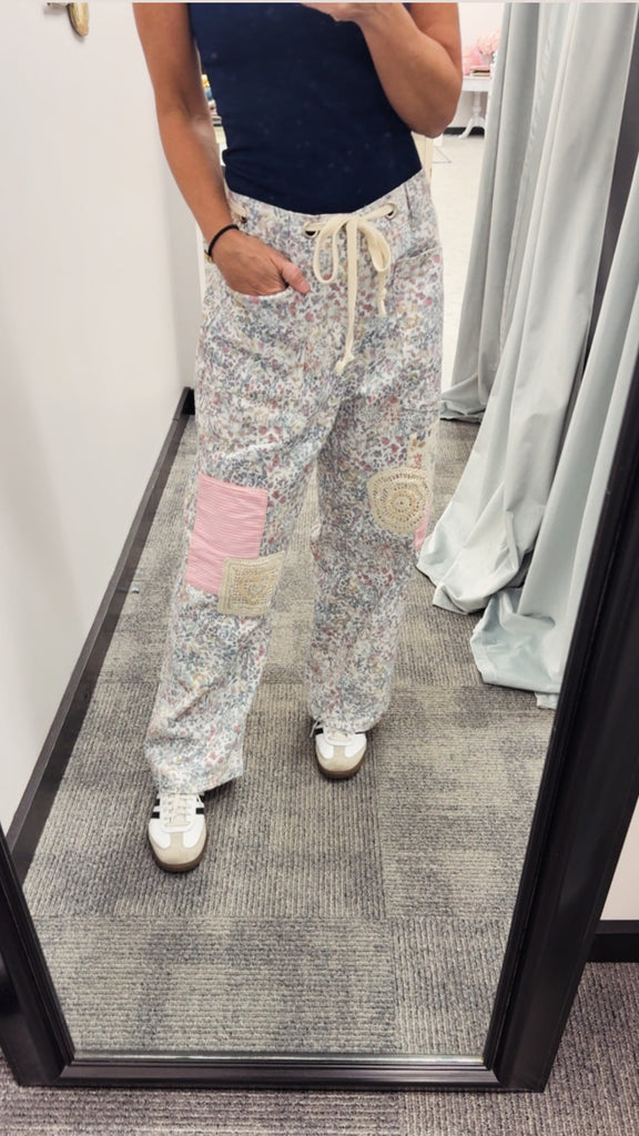 Elevate your casual wardrobe with these versatile patchwork pants. Crafted from 100% cotton twill and denim, they feature a charming floral print with patchwork detailing throughout. The drawstring waist and straight-leg silhouette offer comfortable, relaxed styling perfect for everyday wear. Mix-and-match friendly, these pants transition seamlessly from weekend errands to laid-back outings.
