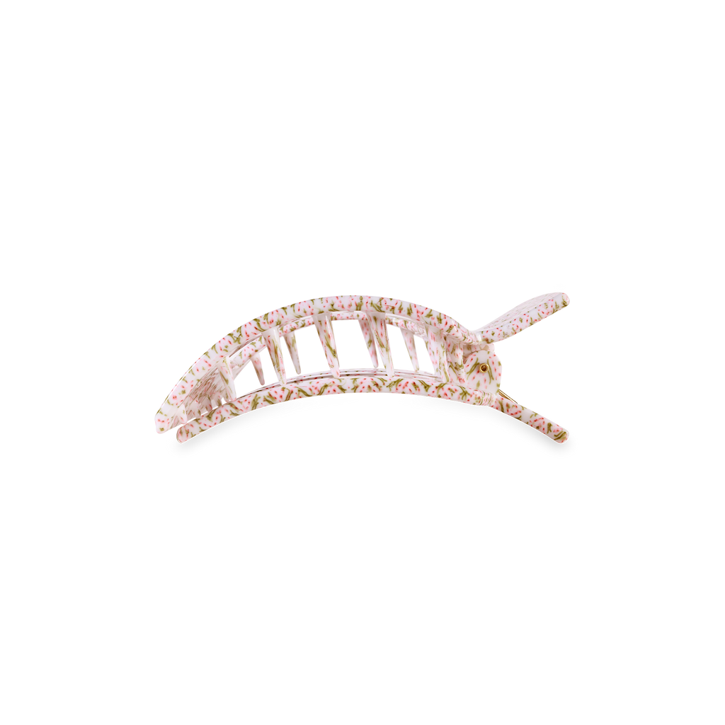 Lay flat and relax with the Pine & Pearl Small Flat Square Hair Clip in Pink. The TELETIES x Laura Park Holiday Collaboration features bold, playful designs that combine Laura’s vibrant art with TELETIES signature function—perfect for any look!